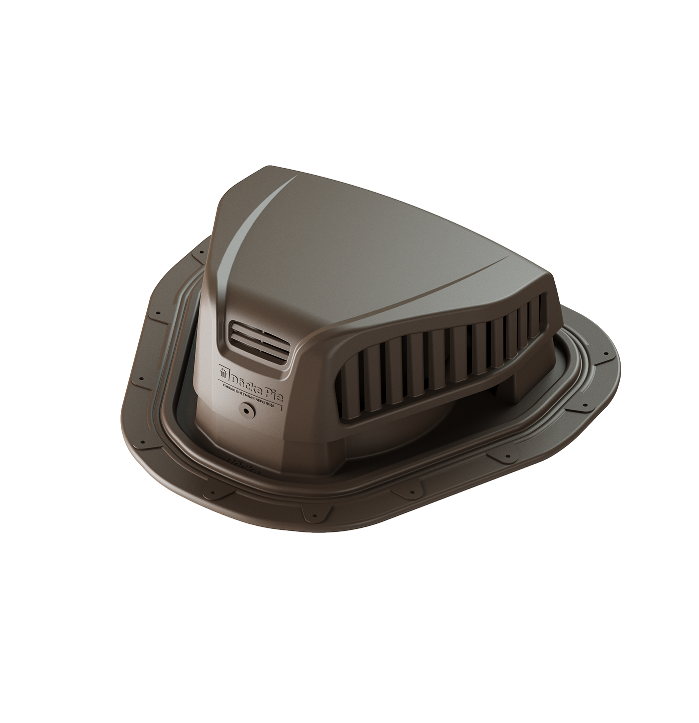 Приглушенный благородный оттенок хорошо сочетается с коричневой и серой цветовой гаммой. Аэратор подходит для установки на кровли, покрытые однотонной мягкой черепицей и гонтами с эффектом градиента.