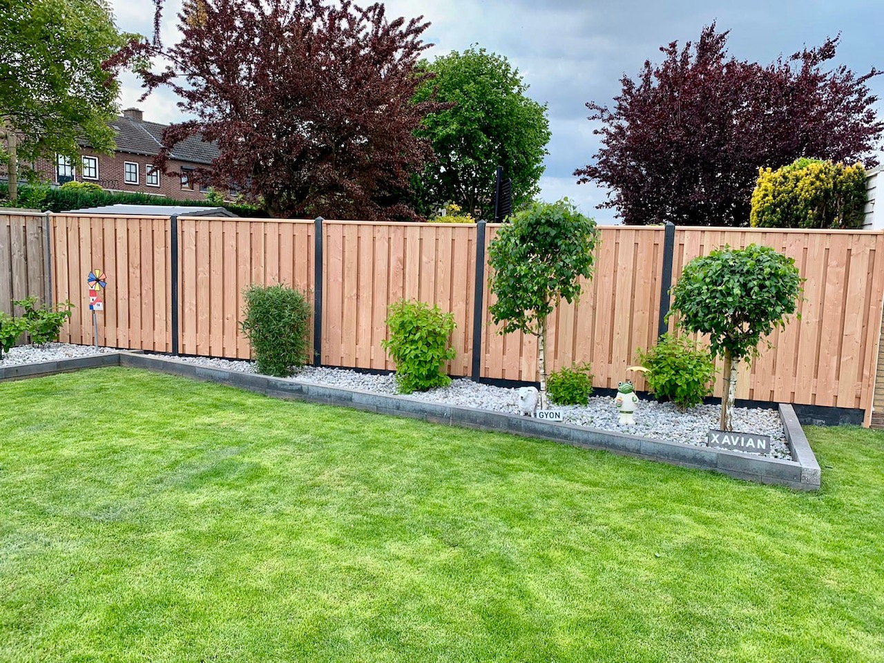 ⭐ имеет столбчатый фундамент, что позволяет сажать деревья и кустарники рядом с забором;