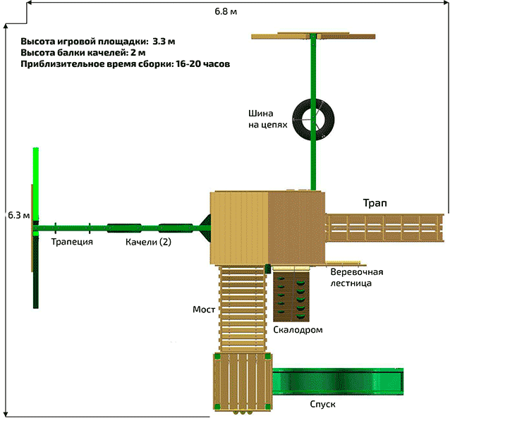 Размеры спортивно-игрового комплекса «ГУЛЛИВЕР»