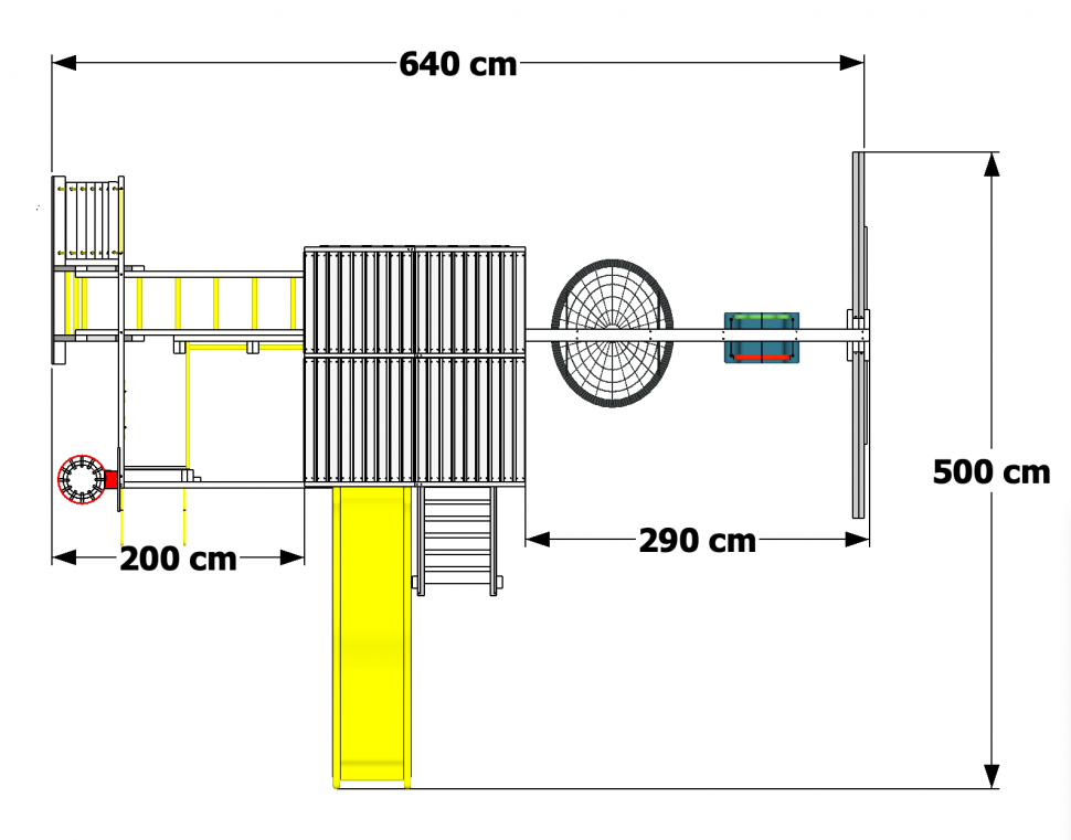 Длина всей площадки — 640см