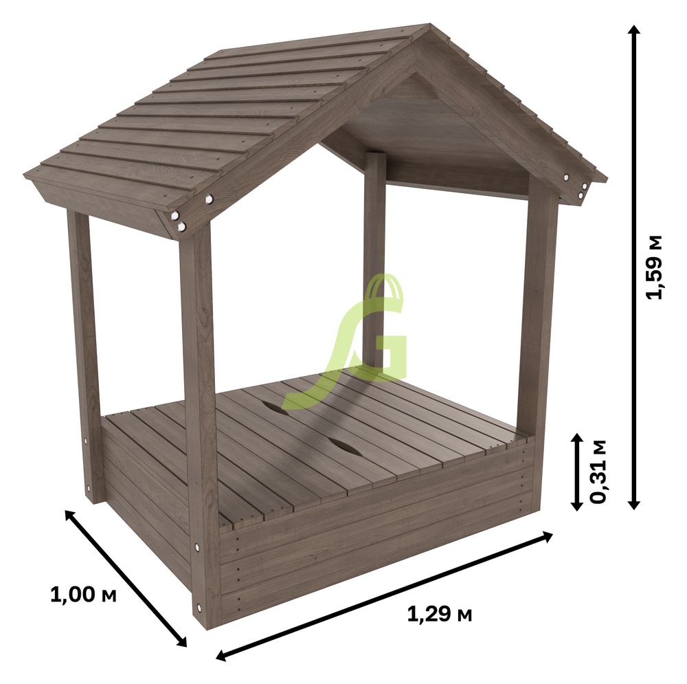 - Габариты песочницы: 1,29×1,00