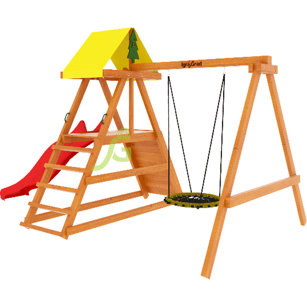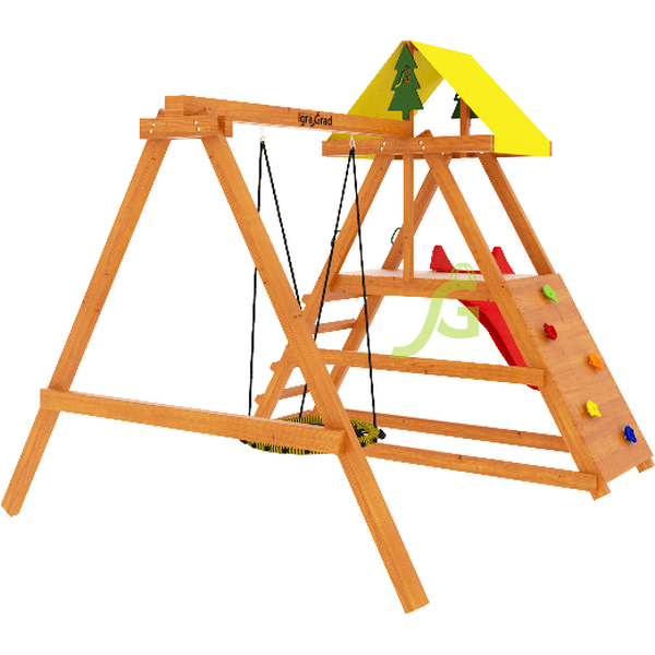 Ещё одним главным достоинством игровой конструкции является её экологичность. Для её изготовления применяли клееный брус камерной сушки. Для сохранения всех свойств древесины на протяжении нескольких лет, материал пропитан составом на водной нетоксичной основе – пусть Ваши дети дышат свежим воздухом! Купить детскую игровую площадку IgraGrad Старт 2 – обеспечить здоровый досуг всей семье!