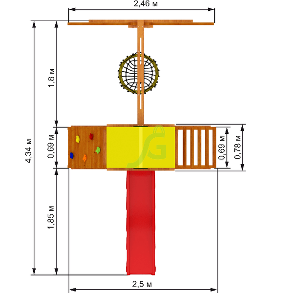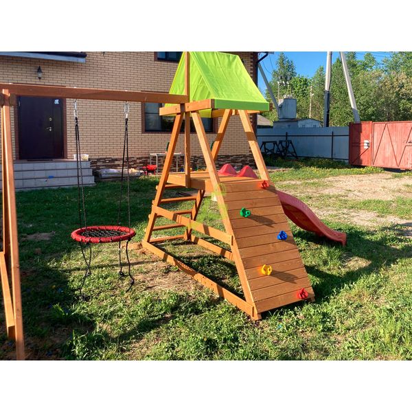 Обращаем Ваше внимание, что цвет установленной детской площадки может отличаться от представленных изображений на сайте. Специфика окраски нетоксичными пропитками допускает отклонения в цветовой гамме отгружаемых изделий вследствие различного цвета натурального природного сырья и естественных компонентов, используемых для производства площадок.