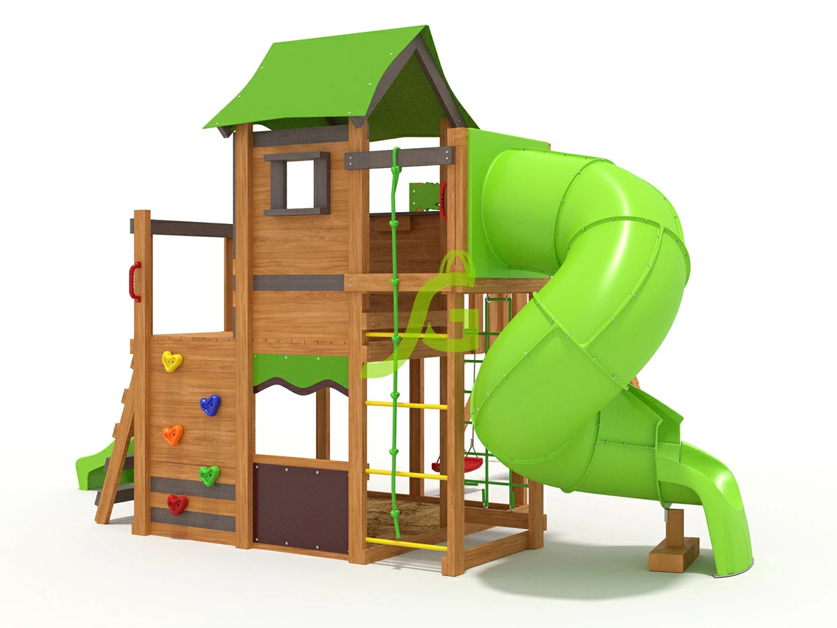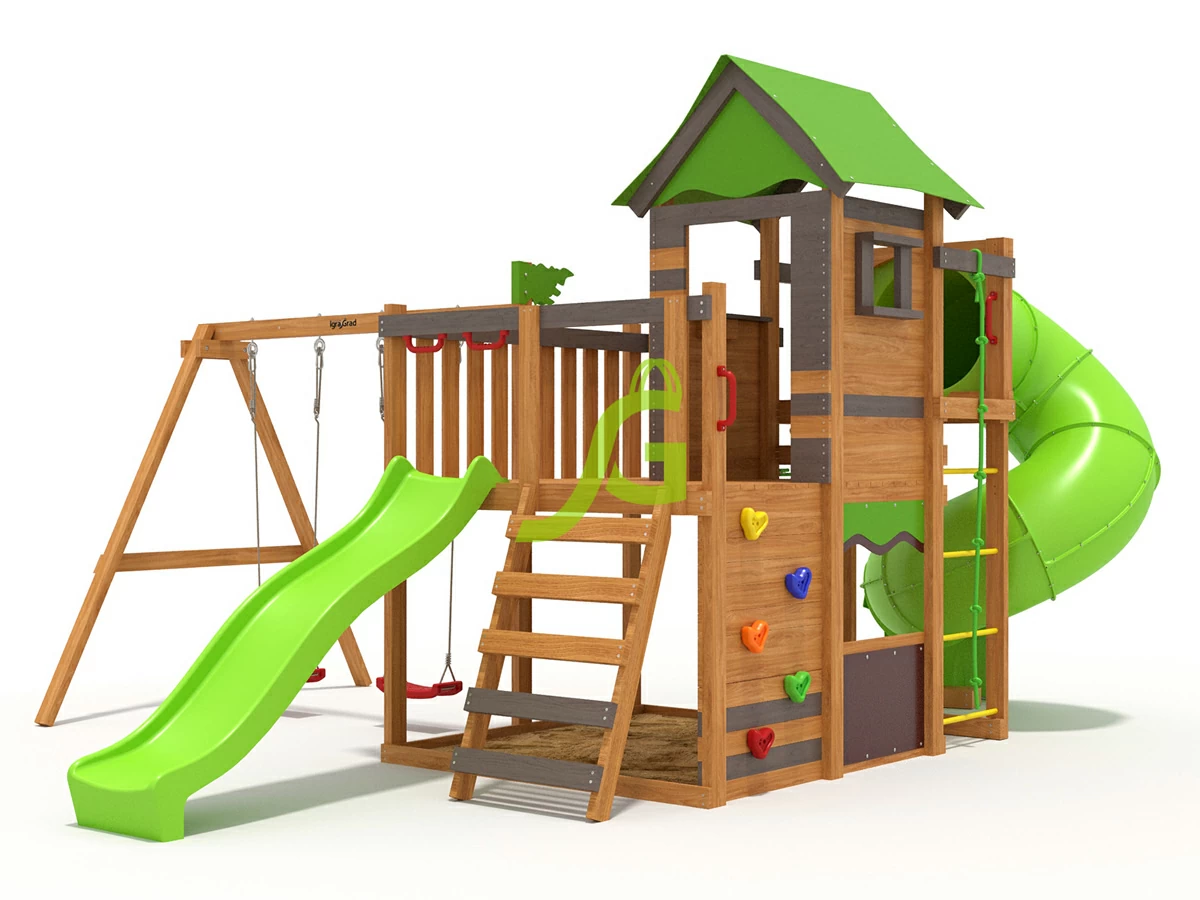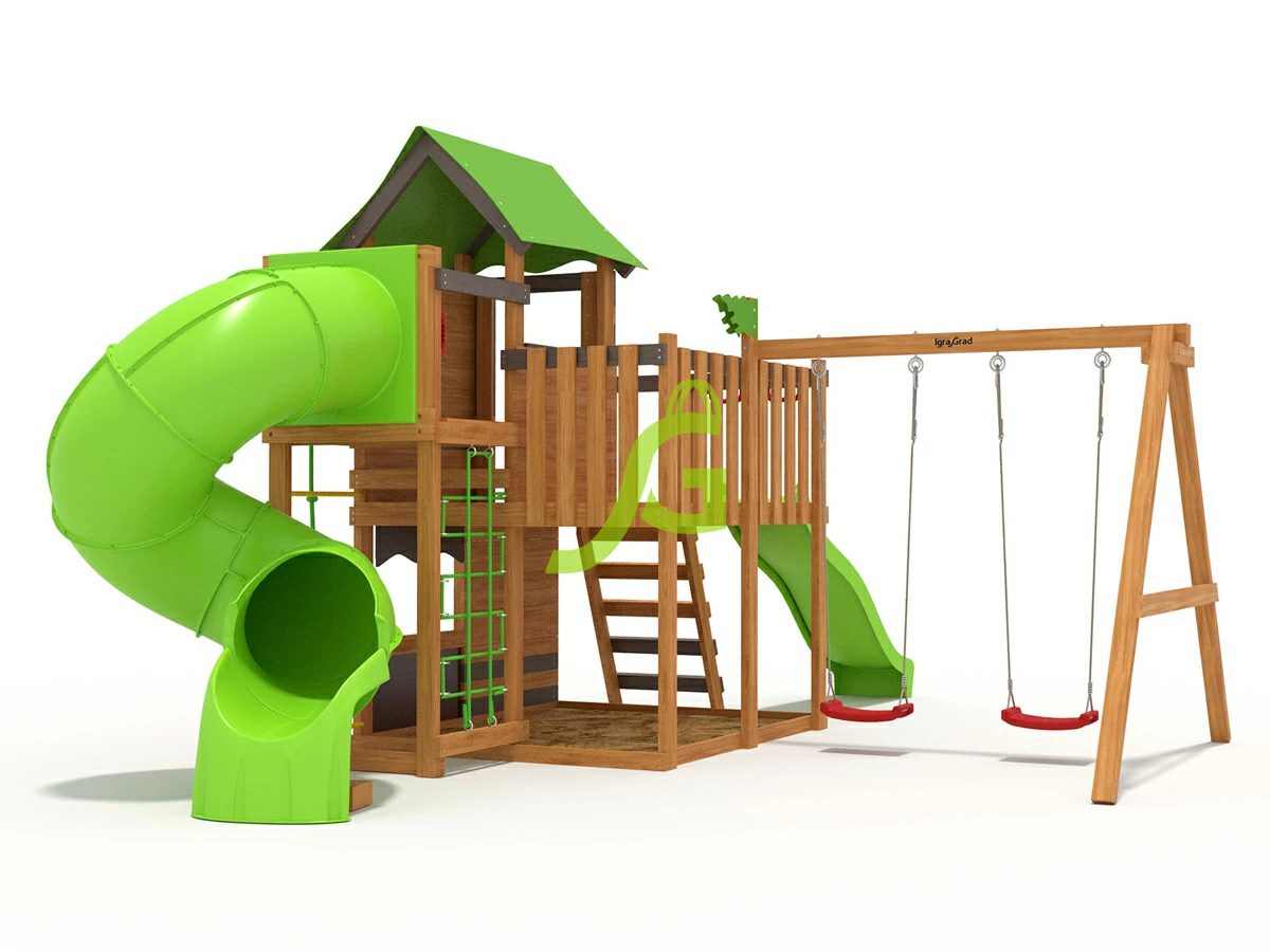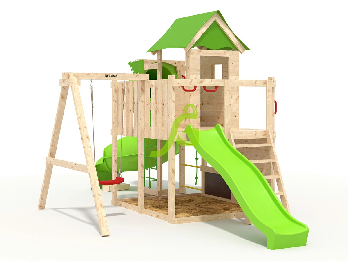 Игровая площадка IgraGrad серии W 33 предлагает детям множество увлекательных функций. Горка-труба высотой 1,5 метра и захватывающая горка высотой 1,2 метра, а также качели — эта игровая площадка обеспечивает бесконечное веселье. Двухуровневый домик спроектирован с учетом требований комфорта и безопасности: под ним находится прочные столбы и навес крыши, идеальный для игры свежем воздухе. Дети могут подняться на вершину домика с помощью лестницы, скалодрома или перекладин. Наша забота о безопасности детей означает, что при строительстве этой игровой площадки используются только самые качественные материалы. Инвестируйте в счастье своих детей уже сегодня, купив игровую площадку IgraGrad.