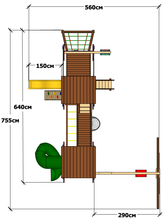 • Длина качельной балки — 290см