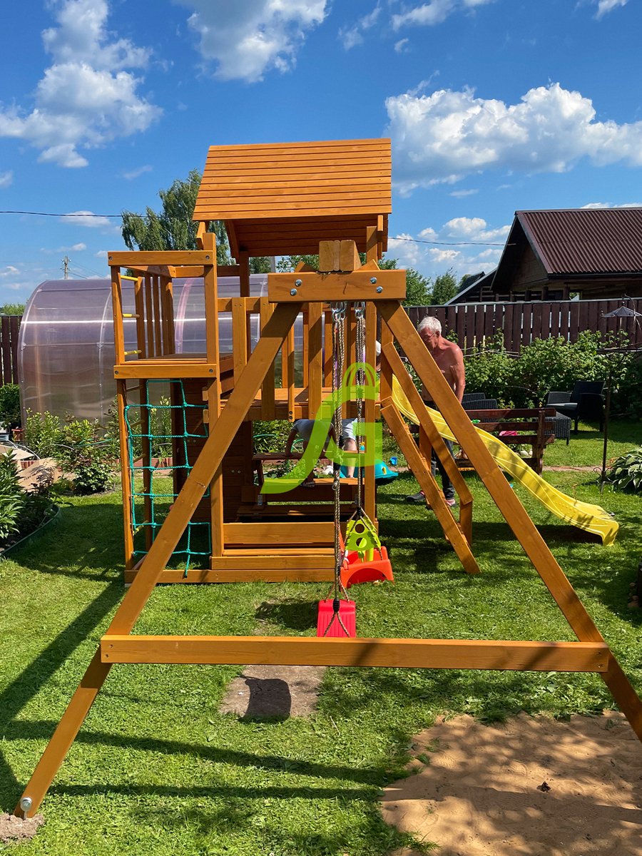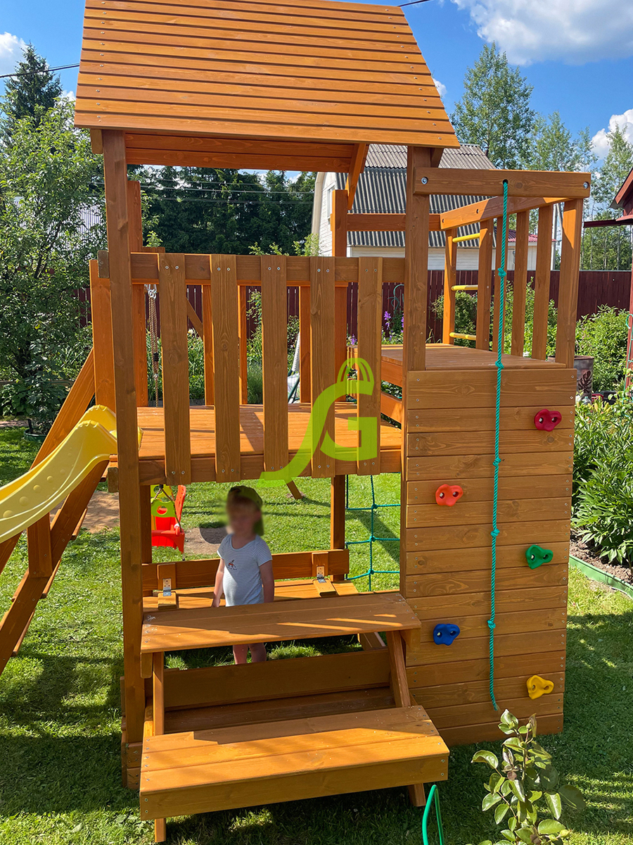 Обращаем Ваше внимание, что цвет установленной детской площадки может отличаться от представленных изображений на сайте. Специфика окраски нетоксичными пропитками допускает отклонения в цветовой гамме отгружаемых изделий вследствие различного цвета натурального природного сырья и естественных компонентов, используемых для производства площадок.