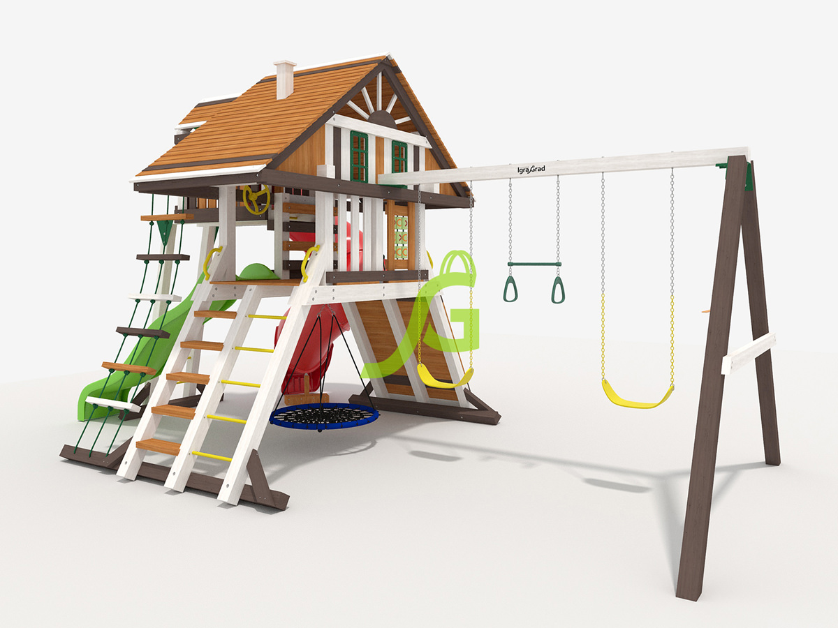 Обращаем Ваше внимание, что цвет установленной детской площадки может отличаться от представленных изображений на сайте. Специфика окраски нетоксичными пропитками допускает отклонения в цветовой гамме отгружаемых изделий вследствие различного цвета натурального природного сырья и естественных компонентов, используемых для производства площадок.