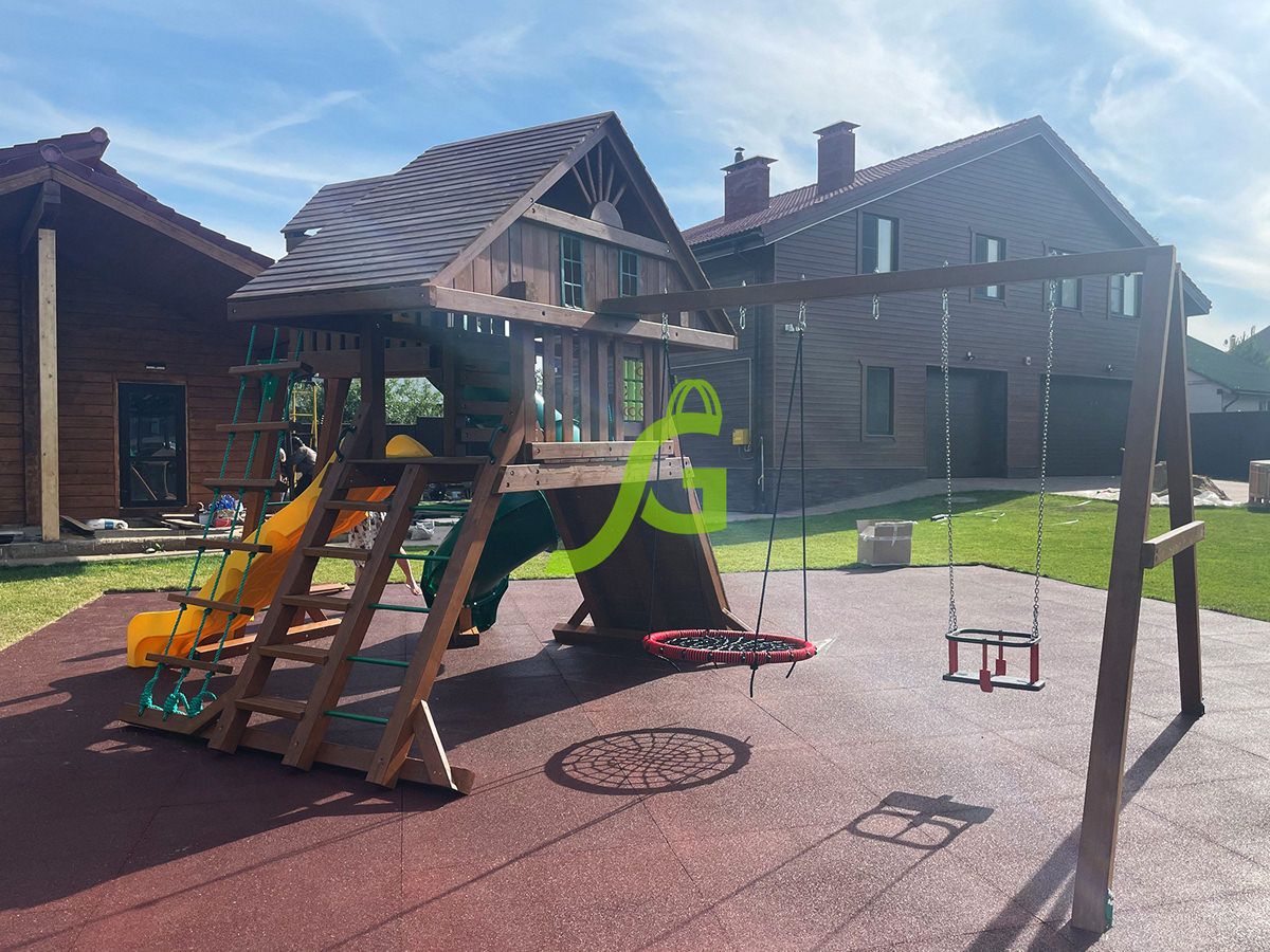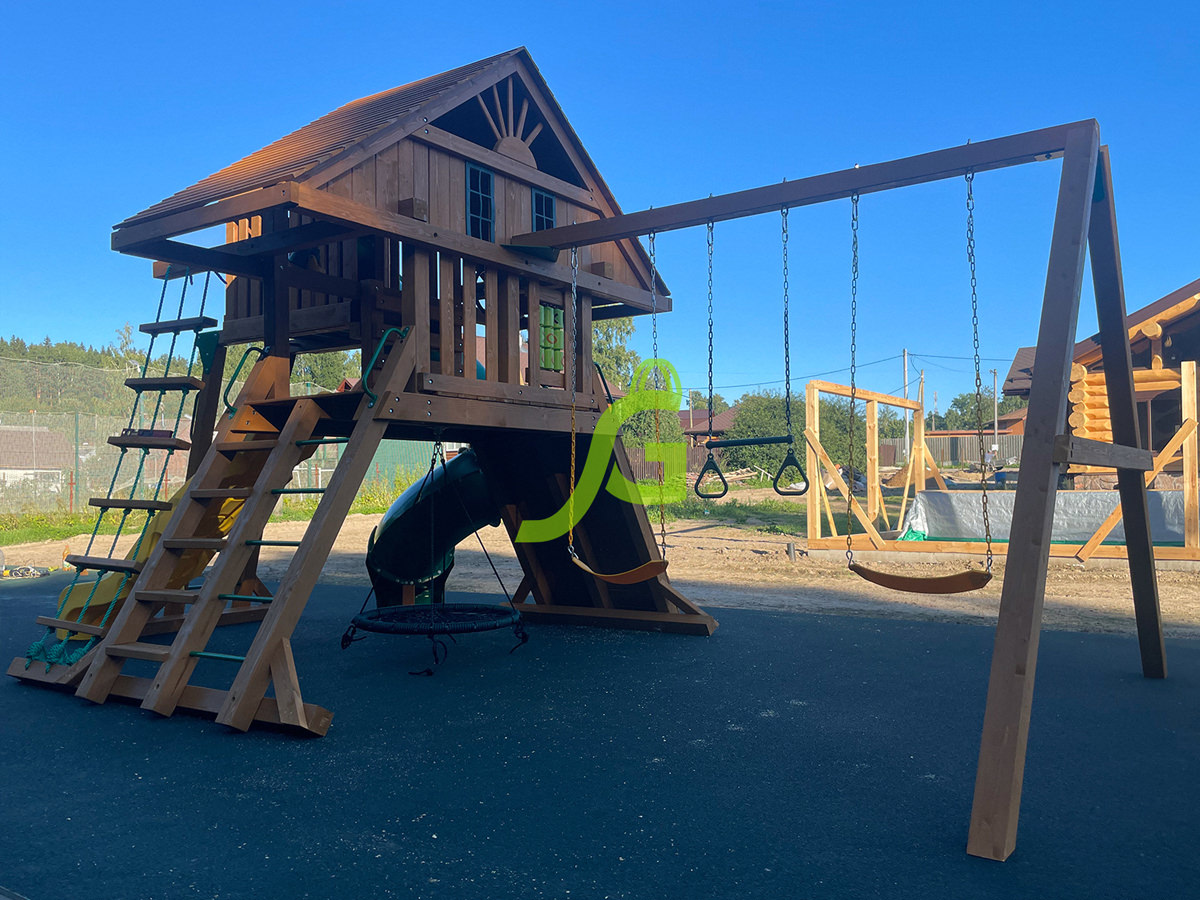 Конструкция устанавливается возле дачного домика, поэтому родители могут одновременно заниматься прополкой грядок и следить за детьми. Времяпрепровождение на детской деревянной площадке благоприятно воздействует на здоровье. Дети становятся сильнее, крепче, адаптированными к обществу, спортивными. Благодаря функциональной конструкции малыши с пользой проводят свой досуг и торопятся снова поиграть на свежем воздухе.