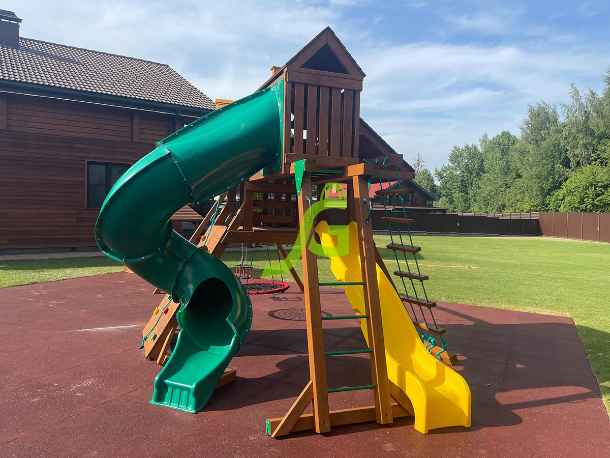Обращаем Ваше внимание, что цвет установленной детской площадки может отличаться от представленных изображений на сайте. Специфика окраски нетоксичными пропитками допускает отклонения в цветовой гамме отгружаемых изделий вследствие различного цвета натурального природного сырья и естественных компонентов, используемых для производства площадок.