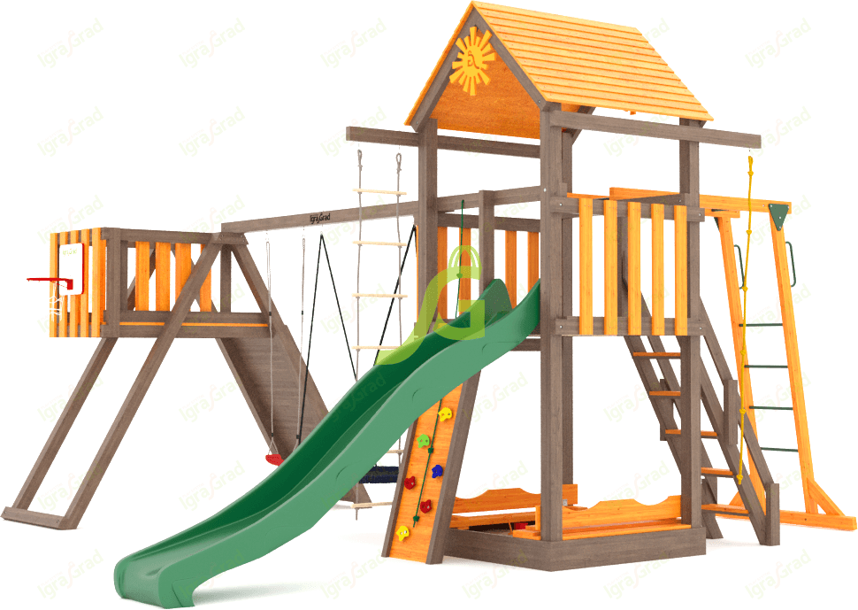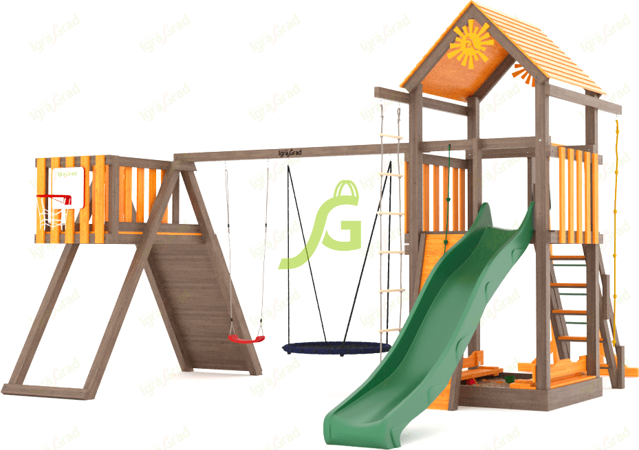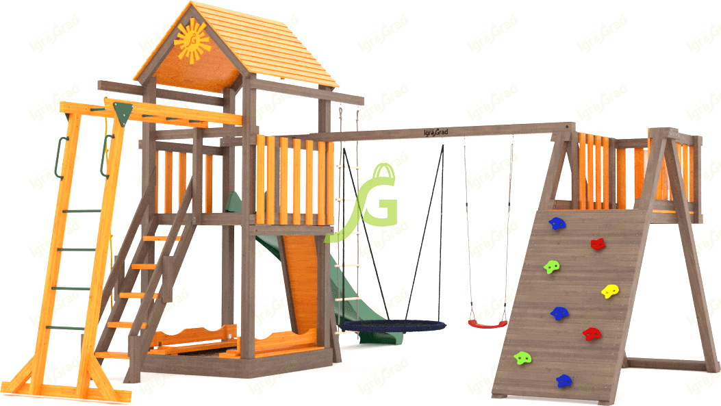 Обращаем Ваше внимание, что цвет установленной детской площадки может отличаться от представленных изображений на сайте. Специфика окраски нетоксичными пропитками допускает отклонения в цветовой гамме отгружаемых изделий вследствие различного цвета натурального природного сырья и естественных компонентов, используемых для производства площадок.