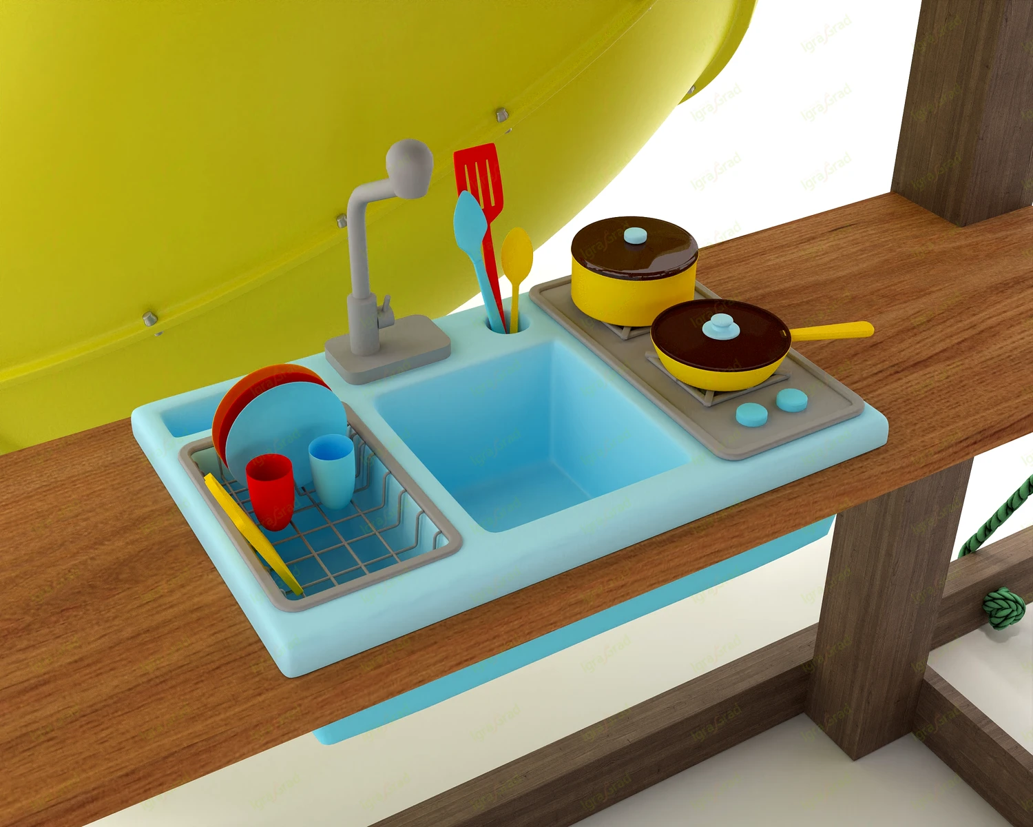 Якоря, столик с детской кухней, подушка и металлические перила на лестницу в комплект не входят. Приобретаются отдельно по желанию клиента.