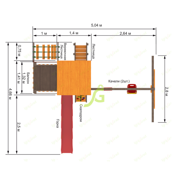 Качели — классическое развлечение, которое любят дети всех возрастов. Расположенные на отдельном модуле, качели не пересекаются с остальными элементами и обеспечивают максимальную безопасность для ребёнка.