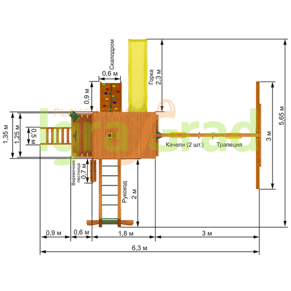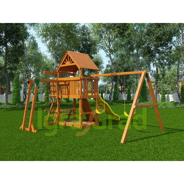 Обращаем Ваше внимание, что цвет установленной детской площадки может отличаться от представленных изображений на сайте. Специфика окраски нетоксичными пропитками допускает отклонения в цветовой гамме отгружаемых изделий вследствие различного цвета натурального природного сырья и естественных компонентов, используемых для производства площадок.