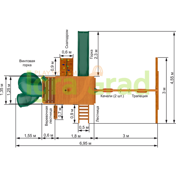 Габариты игрового комплекса для детей составляют: