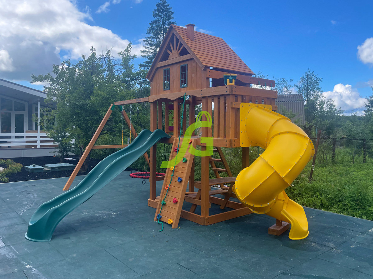 Обращаем Ваше внимание, что цвет установленной детской площадки может отличаться от представленных изображений на сайте. Специфика окраски нетоксичными пропитками допускает отклонения в цветовой гамме отгружаемых изделий вследствие различного цвета натурального природного сырья и естественных компонентов, используемых для производства площадок.
