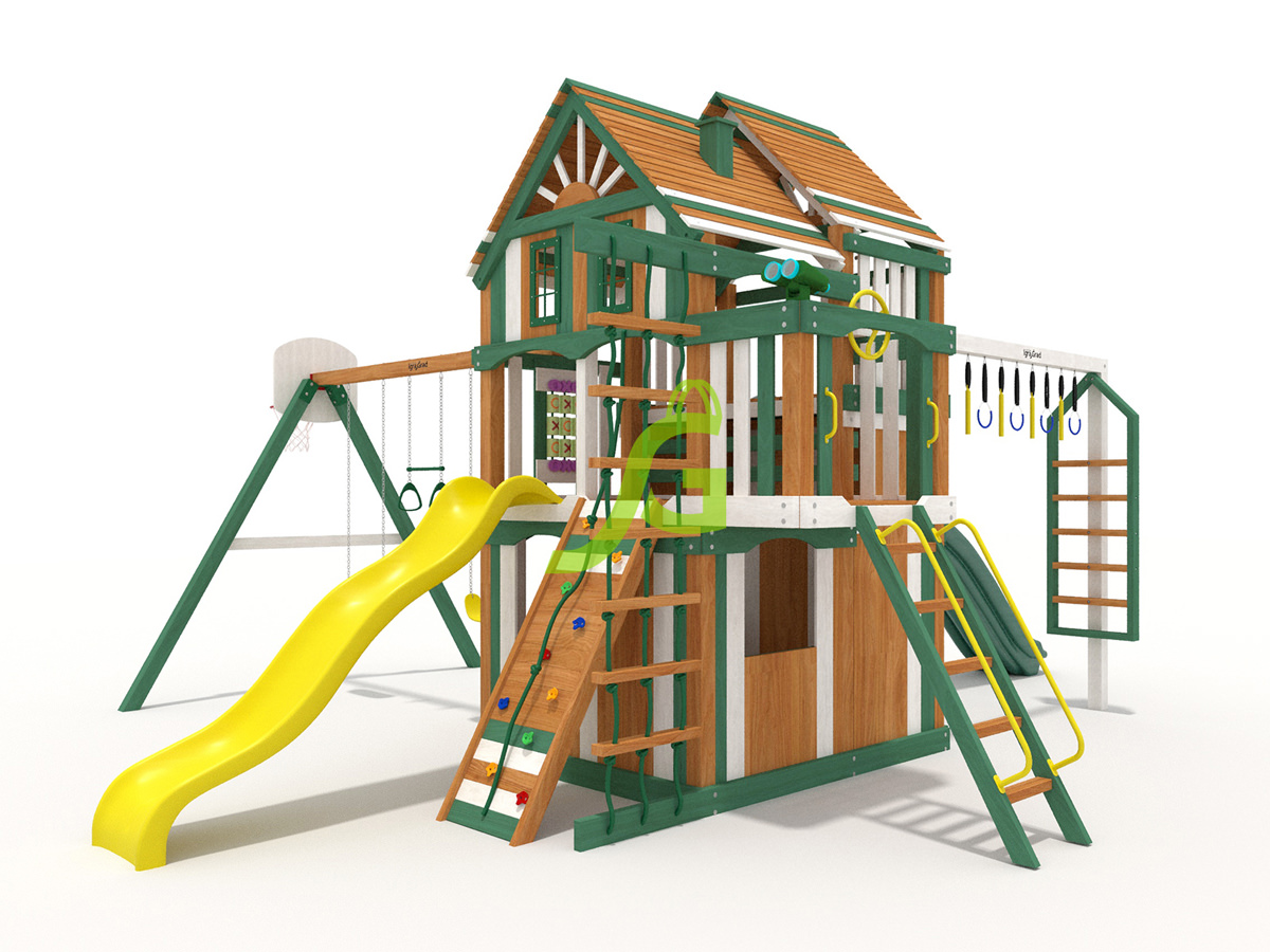 Обращаем Ваше внимание, что цвет установленной детской площадки может отличаться от представленных изображений на сайте. Специфика окраски нетоксичными пропитками допускает отклонения в цветовой гамме отгружаемых изделий вследствие различного цвета натурального природного сырья и естественных компонентов, используемых для производства площадок.