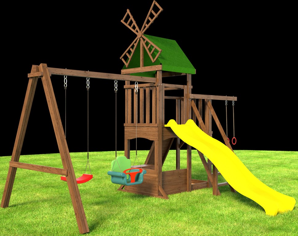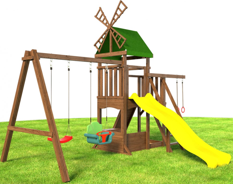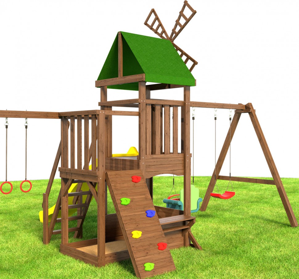 Если вы ищете надежное оборудование для придомовой территории, вам следует купить игровую площадка «Мельница». Она изготовлена из карельской сосны. Природный материал не боится перепадов температур, не гниет, не рассыхается.