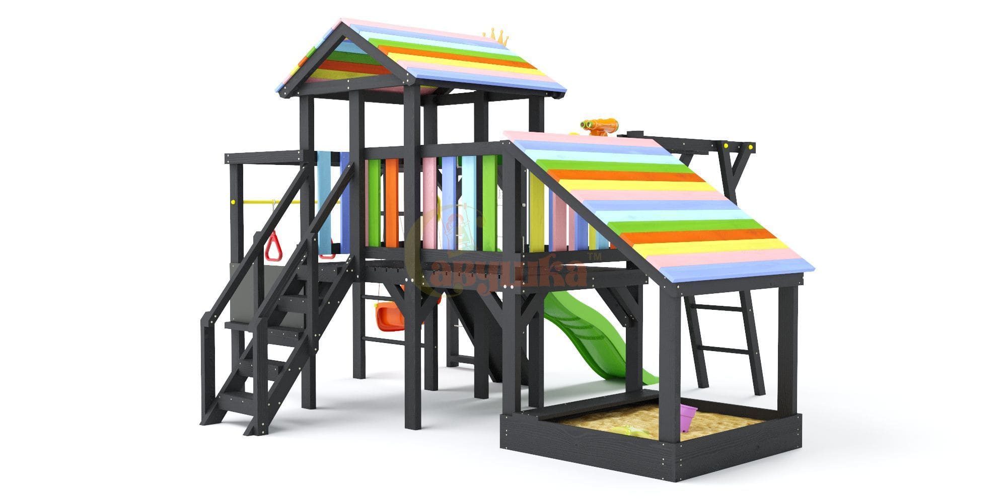 Детская площадка Савушка 10 (BLACK) – это современный игровой комплекс для активного, безопасного и увлекательного времяпрепровождения детей на свежем воздухе Продуманная конструкция позволяет разместить площадку на любом дачном участке, создавая пространство для игр, спорта и творчества одновременно Каждый элемент комплекса разработан с учётом безопасности, комфорта и развития ребёнка