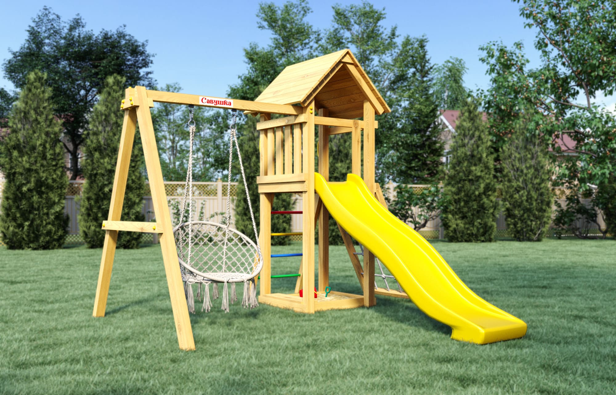 Детская площадка Савушка Мастер 7 с плетеным креслом