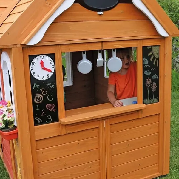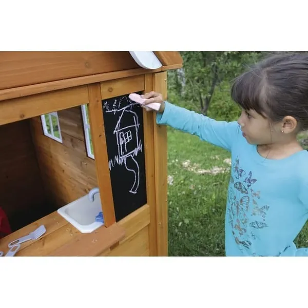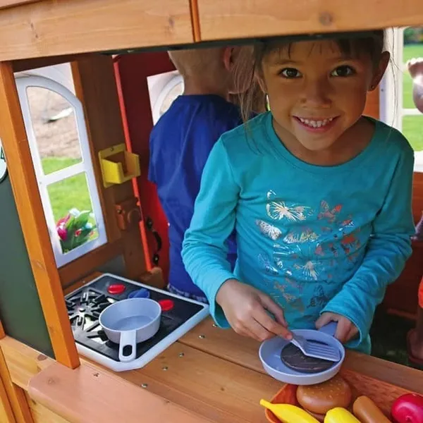 Очаровательный детский домик Stoneycreek может вмещать в себя до 5 детей одновременно. Созданный с особом вниманием к архитектурным деталям, таким как фасад из искусственного камня, дымоход, арочные стеклопакеты и цветочница, домик для детей Stoneycreek предназначен для развития творческого воображения. Внутри детского домика есть роскошный кухонный гарнитур с игрушечной раковиной, плитой, и даже посудой. Есть и другие забавные предметы интерьера, которые включают в себя две двухсторонние доски с часами для рисования мелом, почтовый ящик с работающим флажком, игровой телефон и реальный рабочий дверной звонок. И дети и взрослые будут в восторге от реалистичных деталей: эркер, позволяющий увеличить внутреннее пространство жилища; двускатная крыша с кровлей из натуральной деревянной дранки. Все компоненты детского домика уже нарезаны, напилены, подогнаны и окрашены, поэтому сборка не займёт много времени и сил. При производстве используются только экологически чистые материалы. Этот детский миниатюрный домик — мечта любого ребёнка!