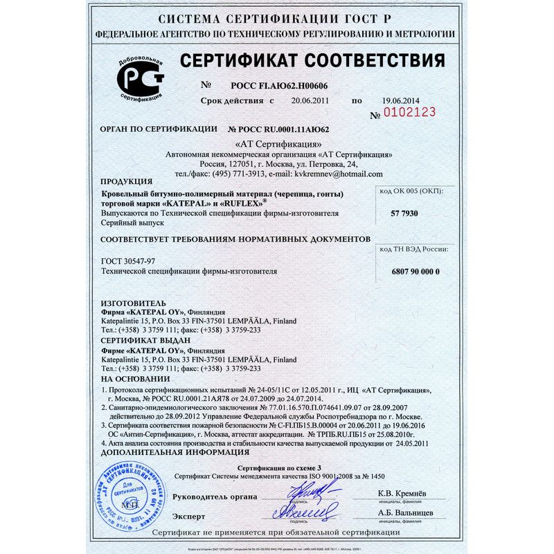 Битумная черепица Ruflex производится в Европе с 2003 года и уже получила широкое признание в России и странах СНГ благодаря устойчивости к сложным климатическим условиям в совокупности с отличными эксплуатационными показателями. Преимущества гибкой битумной черепицы Ruflex: 1. Износостойкость в сочетании с устойчивостью к резким перепадам температуры, что позволяет успешно эксплуатировать финскую черепицу во всех климатических зонах России и СНГ; 2. Простота монтажа гибкой черепицы — для работы не требуется специнструмент; 3. большой выбор фактурных и цветовых решений, позволяющий подобрать битумную черепицу под любое стилистическое решение дома; 4. Высочайшая долговечность, подтвержденная двадцатипятилетней гарантией производителя; 5. Устойчивость к ветровой и механической нагрузкам; 6. Возможность применения практически на всех типах кровель с уклоном от 11.3 до 90 градусов; 7. Сравнительно небольшая цена гибкой черепицы в совокупности с минимизаций остатков при монтаже позволяют экономить без ущерба качеству кровли.