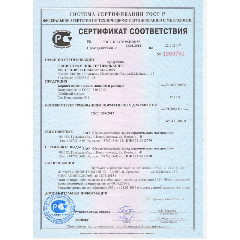 Кирпич облицовочный Голицынский КЗ М175 КОРИЧНЕВЫЙ 250Х120Х88 мм 1. 4НФ