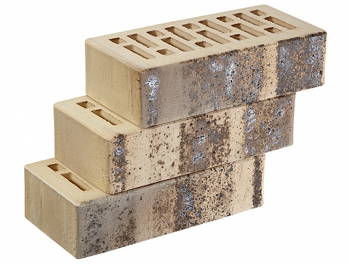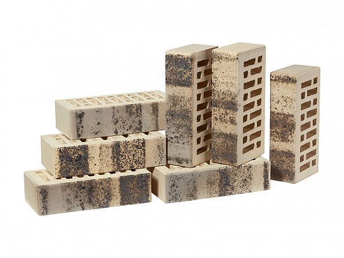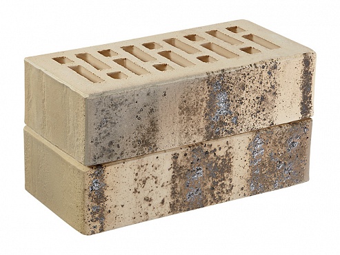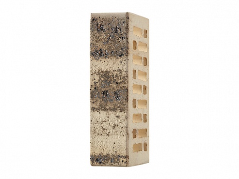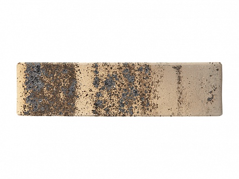 Облицовочный кирпич RECKE серия Krator 1-81-00-2-12 1NF — это настоящий архитектурный бунтард. Классический формат 250 × 120 × 65 мм встречается с дикой, почти вулканической энергией: светлая база цвета слоновой кости покрыта смелыми подпалинами, оплавленными участками и россыпью минеральной крошки, будто кирпич только что вышел из печи после мощного обжига.