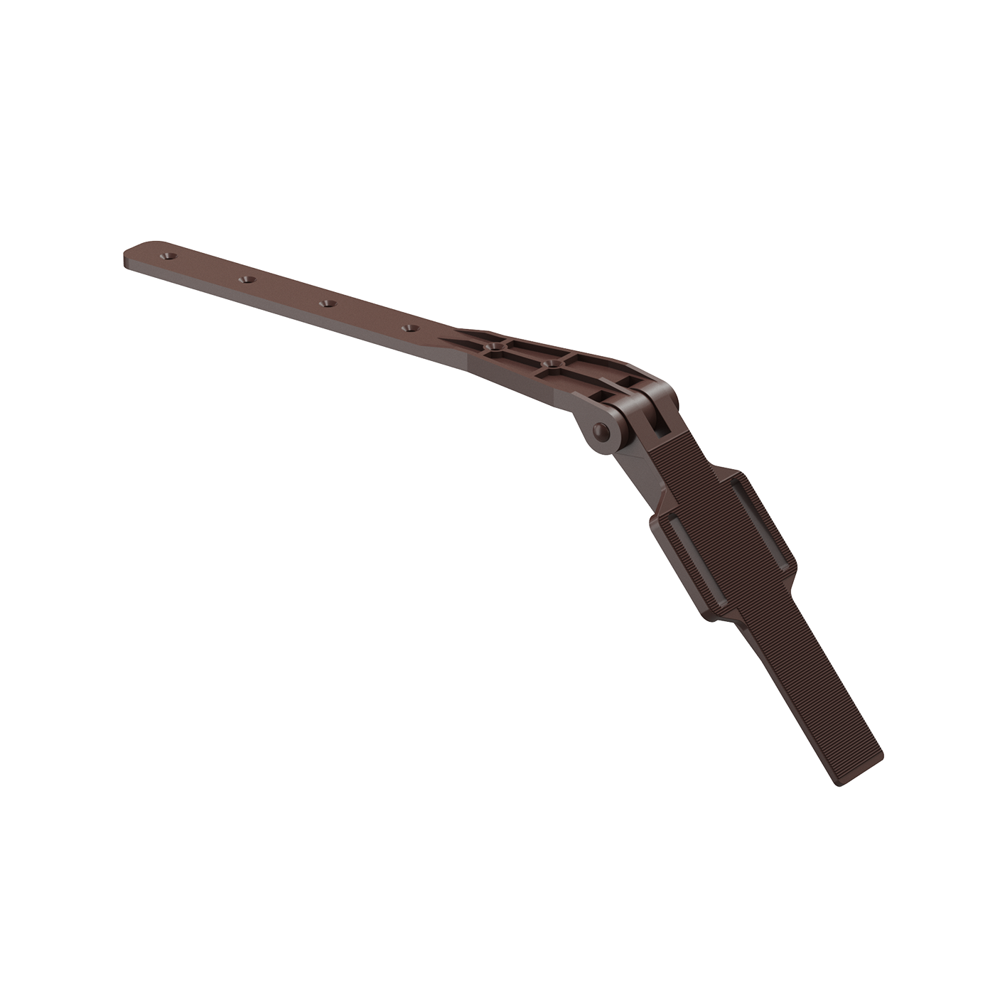 Крепление регулируемое серии «Premium», окрашенное в цвет «Шоколад», используется для монтажа кронштейнов из пластика на конструкцию крыши с отсутствием лобовой доски.