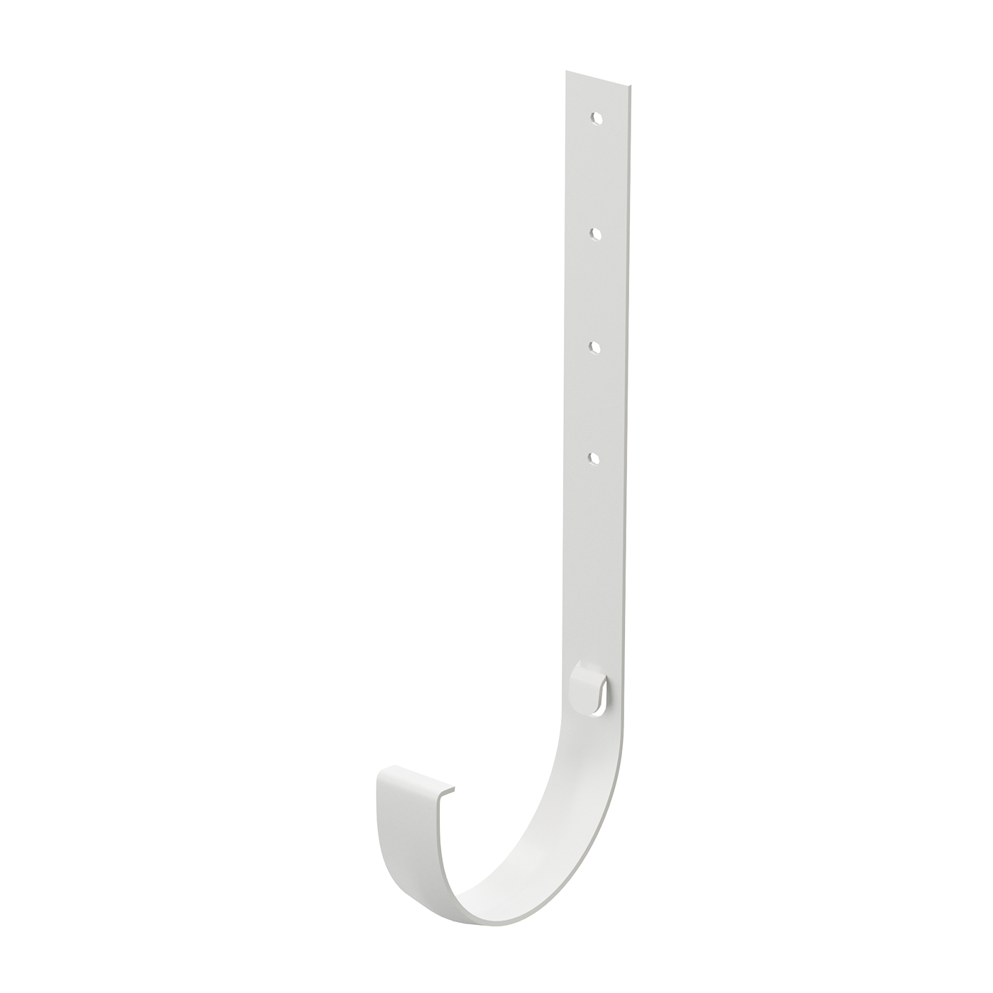 Металлический кронштейн желоба длиной 365 мм применяется, когда крепление кронштейнов осуществляется не на лобовую доску, а на стропила или другую основу кровли.