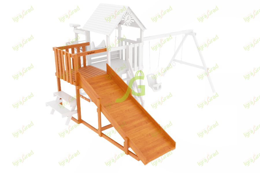 Обращаем Ваше внимание, что цвет установленной детской площадки может отличаться от представленных изображений на сайте. Специфика окраски нетоксичными пропитками допускает отклонения в цветовой гамме отгружаемых изделий вследствие различного цвета натурального природного сырья и естественных компонентов, используемых для производства площадок.