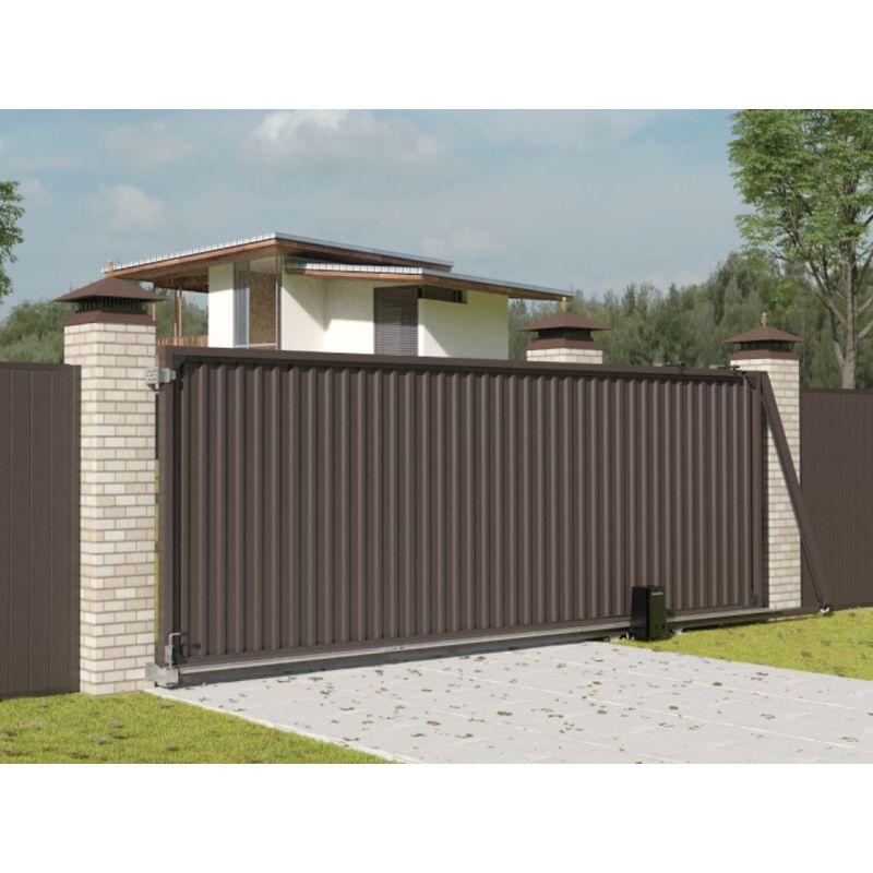 Откатные уличные ворота с заполнением профлистом REVOLUTION-SLD