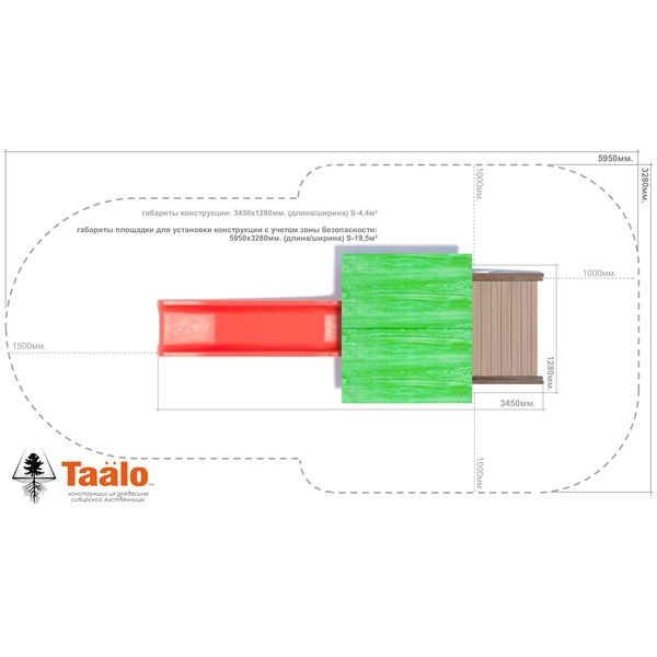 Габариты площадки, требования к установке: площадка 5950х3280мм. (длина/ширина); S-19,5м?.