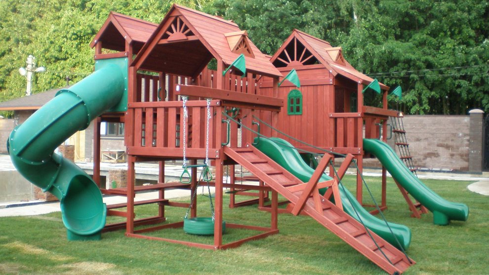 — игровые деревянные домики с окнами, дверьми и дымоходами;