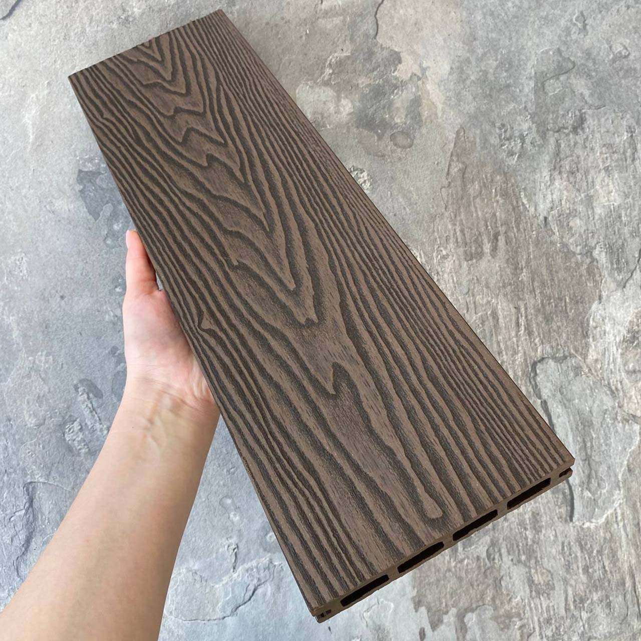 Террасная доска EasyDecking Wood-X из древесно-полимерного композита ДПК. Пустотелая. Доступные размеры, мм: 146х23х3010, 146х23х4010. Длина 3 и 4 метра. Поверхности: одна сторона с рельефной 3Д фактурой под дерево, другая сторона вельвет. Доступно 5 цветов. Фирменные комплектующие в цвет: уголок, ступени, ограждения, заборная доска, фасадная доска, универсальная доска.