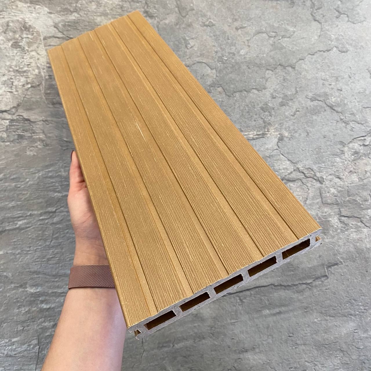 Пустотелая террасная доска с объёмной фактурой. Идеально подходит для коммерческого строительства сегмента HoReCa. Имеет красивый внешний вид и максимальный срок службы.