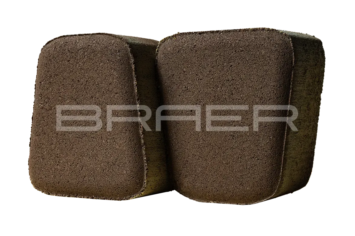 Тротуарная плитка BRAER состоит из 2 слоев: основного и лицевого. Технология двойного вибропрессования позволяет поэтапно уплотнить слои, что увеличивает прочность продукции. Основной слой содержит высокопрочный цемент и гранитный щебень, а лицевой (10% толщины) — мелкофракционный песок, белый цемент и пигменты.