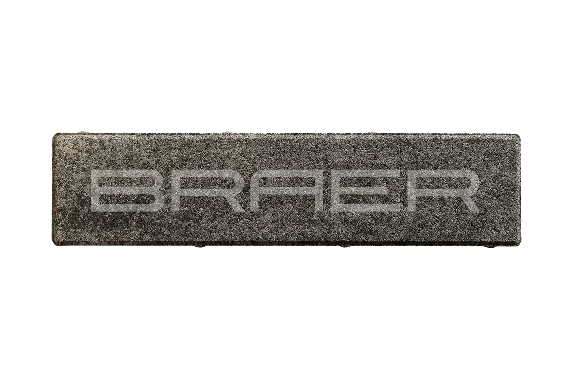 Тротуарная плитка BRAER состоит из 2 слоев: основного и лицевого. Технология двойного вибропрессования позволяет поэтапно уплотнить слои, что увеличивает прочность продукции. Основной слой содержит высокопрочный цемент и гранитный щебень, а лицевой (10% толщины) — мелкофракционный песок, белый цемент и пигменты.