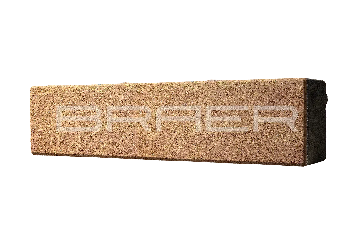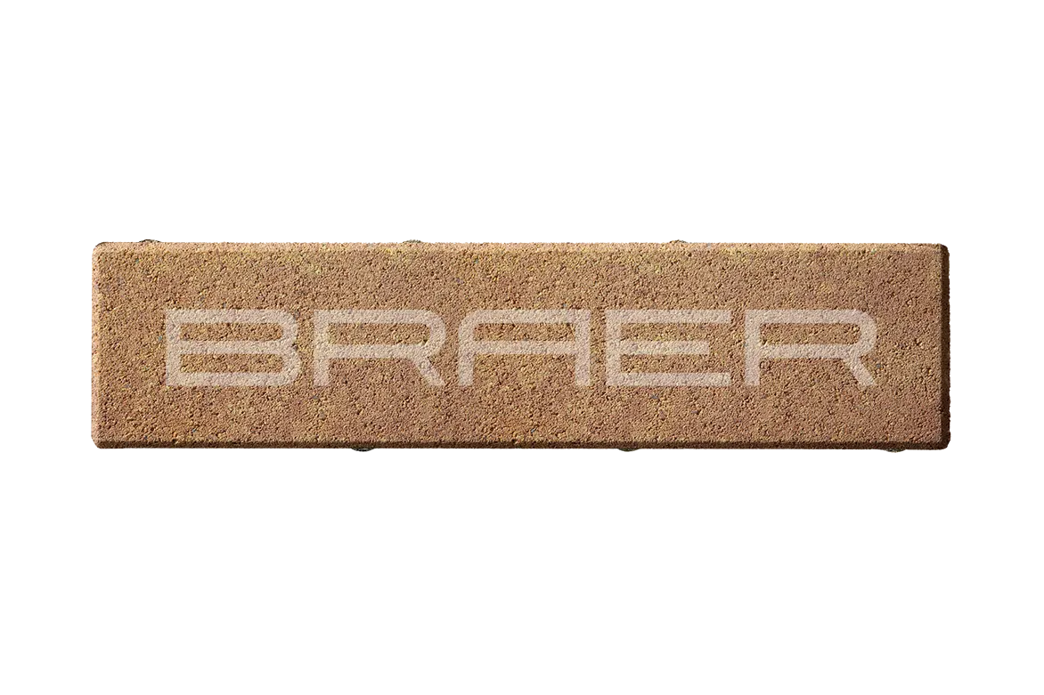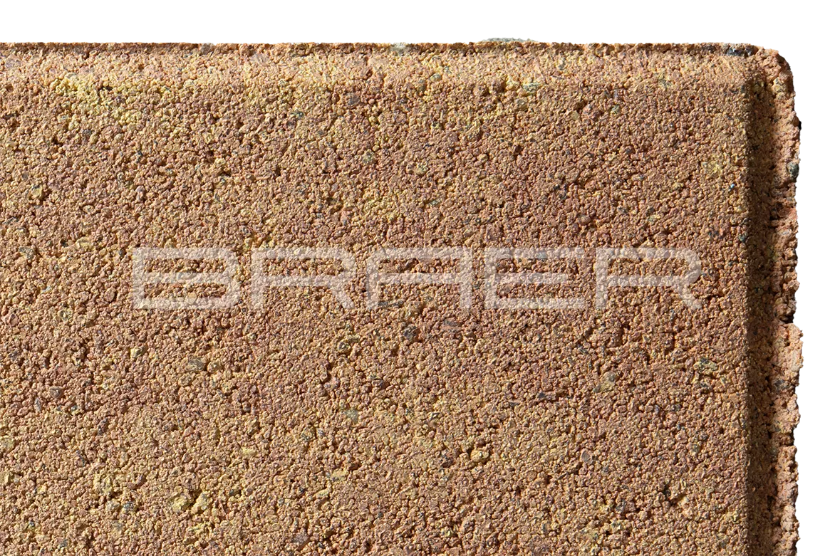 Тротуарная плитка BRAER состоит из 2 слоев: основного и лицевого. Технология двойного вибропрессования позволяет поэтапно уплотнить слои, что увеличивает прочность продукции. Основной слой содержит высокопрочный цемент и гранитный щебень, а лицевой (10% толщины) — мелкофракционный песок, белый цемент и пигменты.