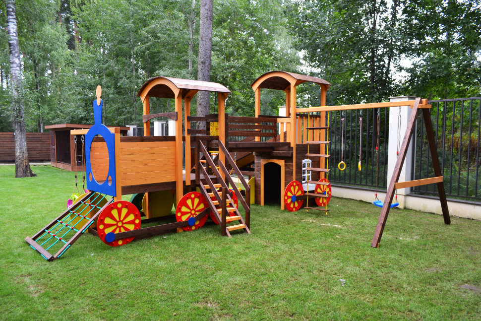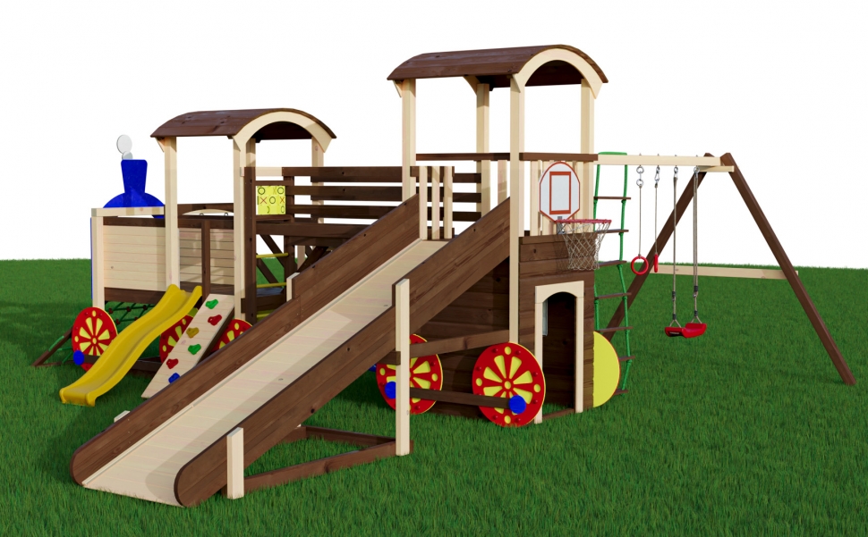 Детская площадка «Паровозик CRUISER 4» выполнена в виде локомотива. Яркая окраска всех элементов конструкции не оставит равнодушным детей в возрасте 3-14 лет. Игровой комплекс оборудован горкой с безопасной высоты в 90см, лабиринтом, сеткой для лазания, небольшим скалодромом с зацепами, лесенкой, модулем с вращающимися кубиками крестики-нолики, двумя видами качелей: со спинкой и с сиденьем-сеткой.