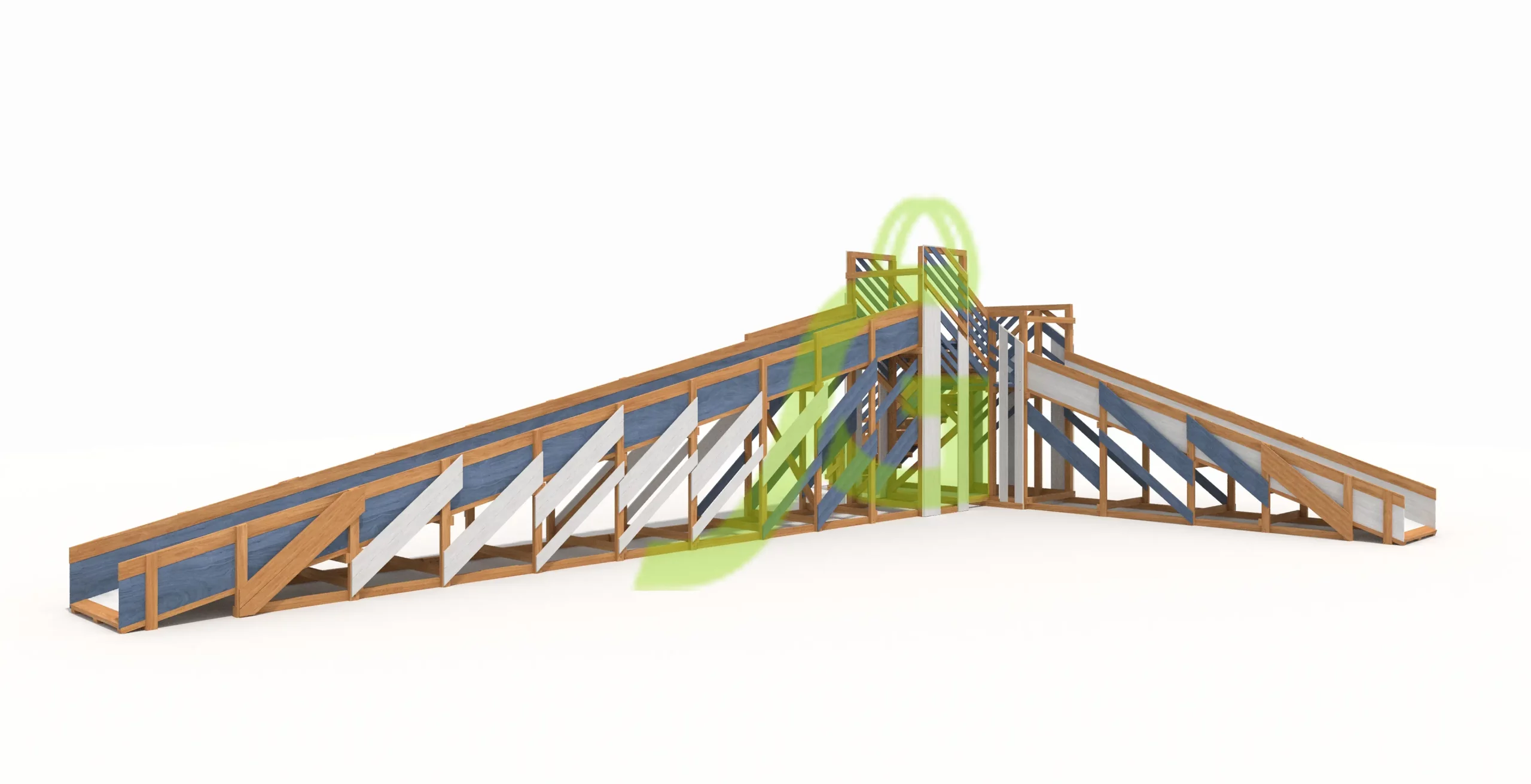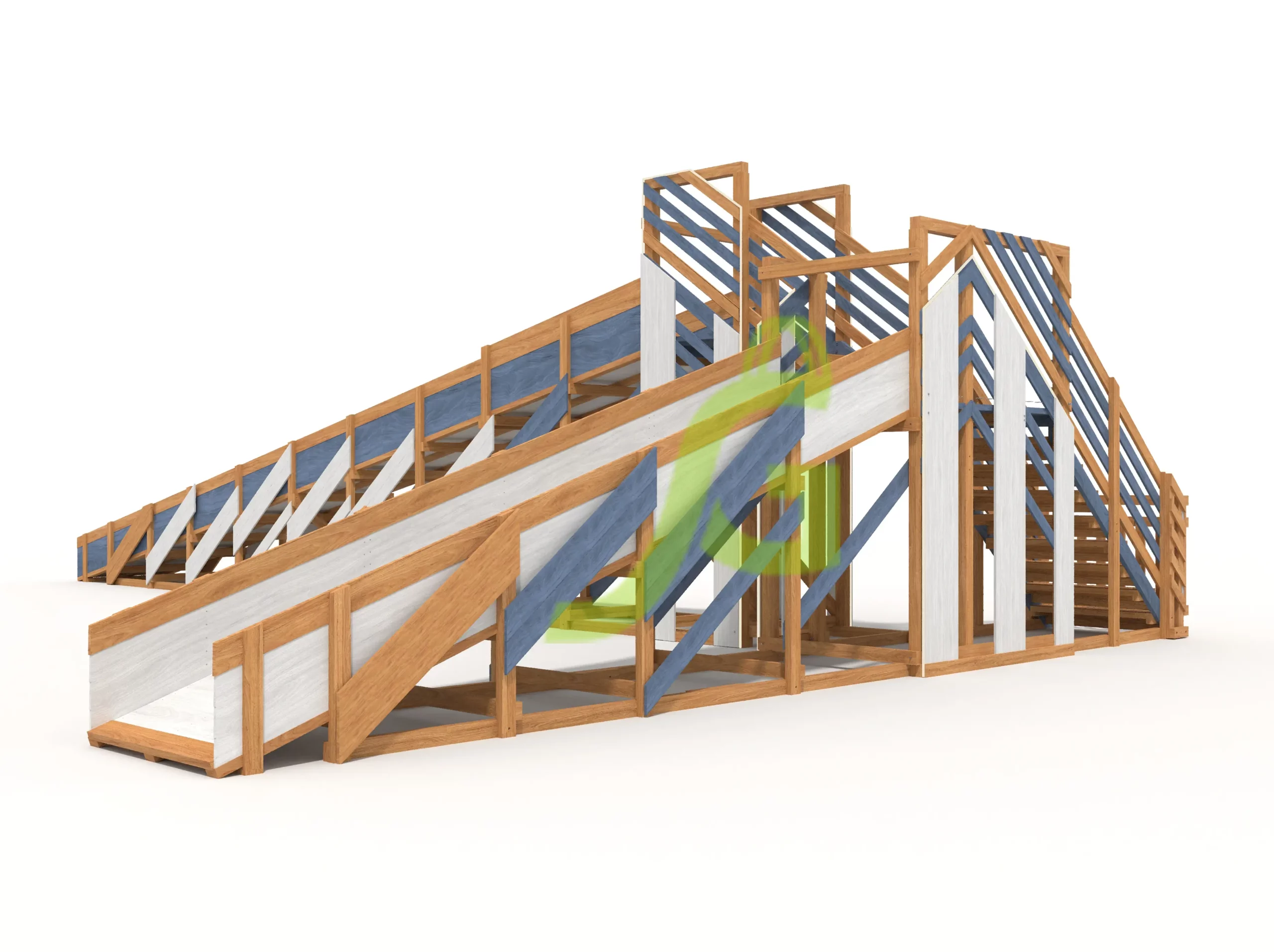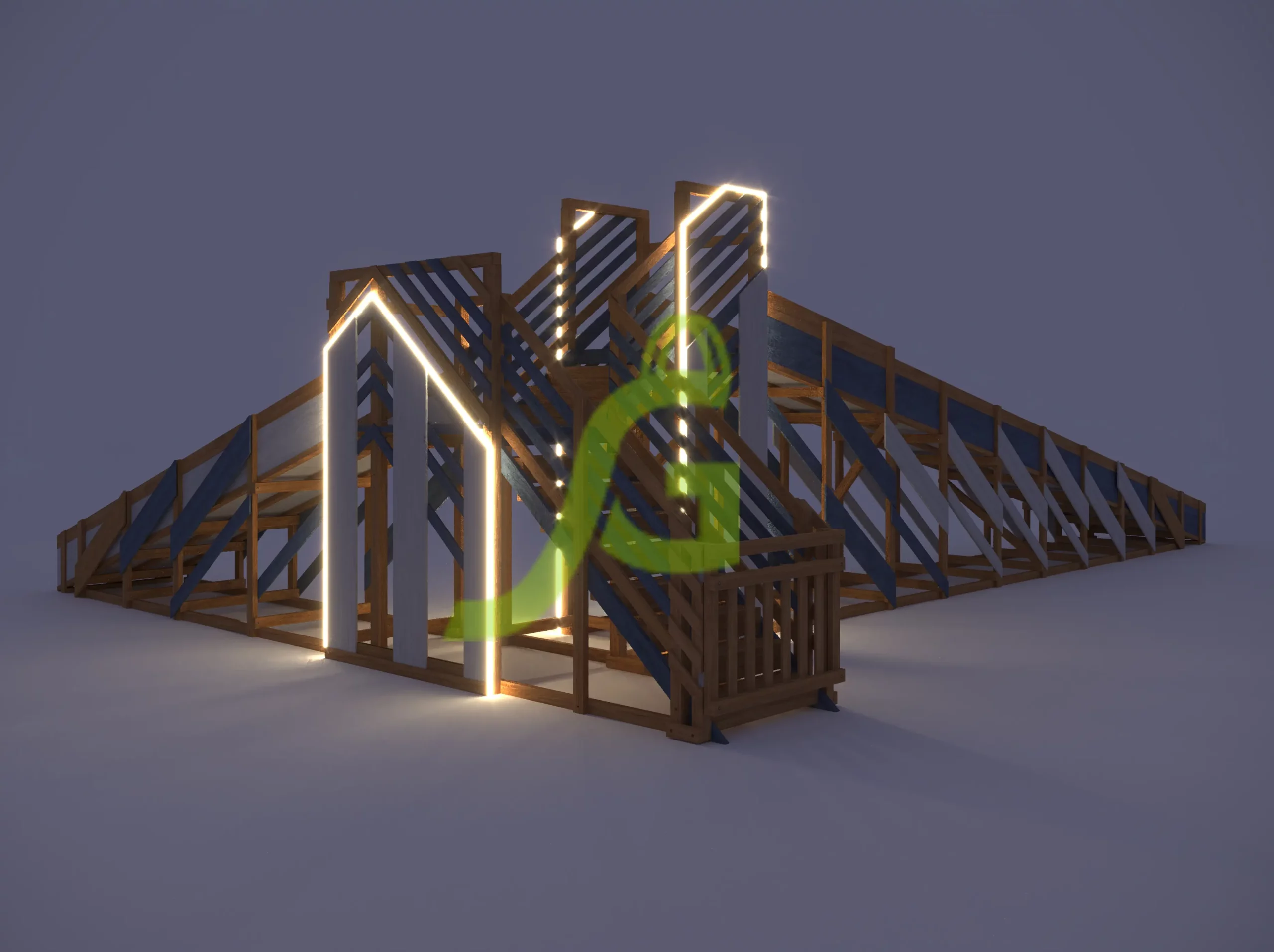 Характеристики зимней деревянной горки «Snow Fox 12 м» с двумя скатами мод.2