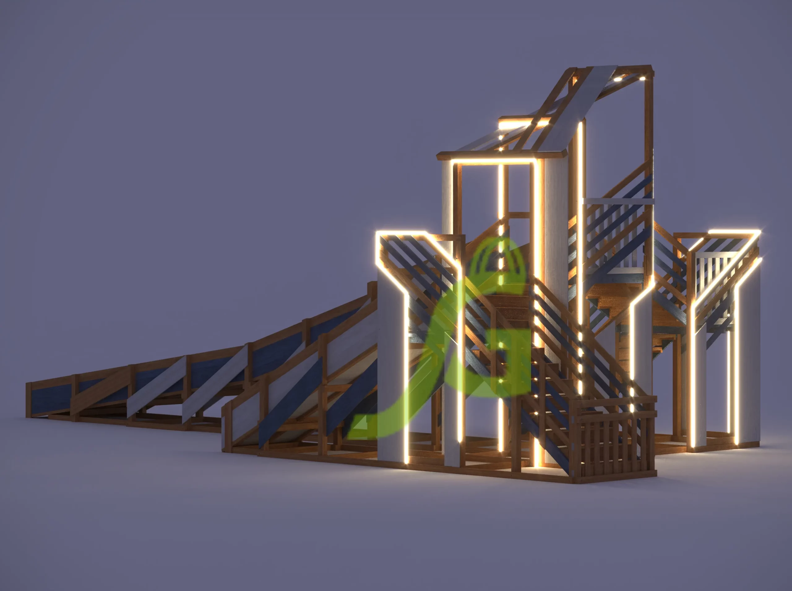 * Ограждение входа на горку, подсветка, подступеньки являются опцией и заказываются отдельно.