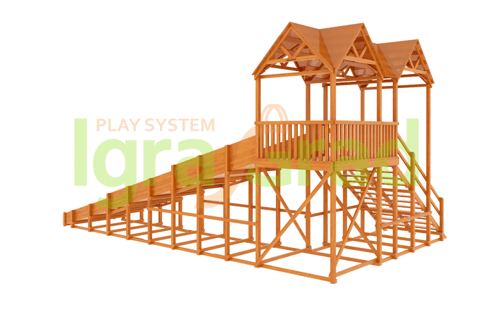 - — Конструкция дополняется деревянной крышей. Она располагается высоко, поэтому совершенно безопасна.