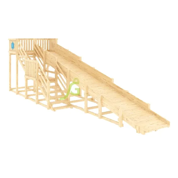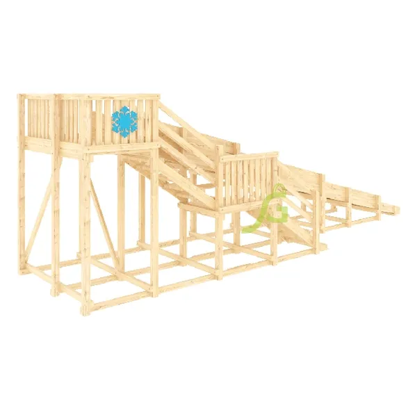 Для подъёма вверх конструкция оснащена лестницей и перилами. Рекомендуется каждый день очищать ступеньки от снега, чтобы на них не натаптывались ледышки, подвергающие детей опасности.