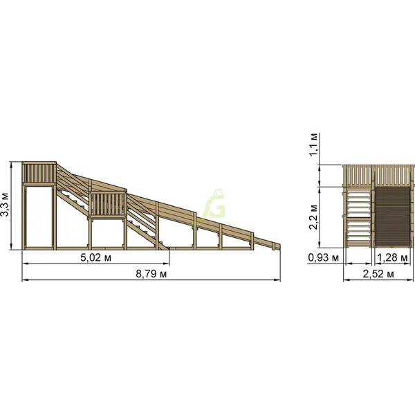 Детская заливная зимняя горка ‘IgraGrad Snow Fox, скат 8 м’ – несущая деревянная конструкция с усиливающими балками. Она имеет скат длиной 8, 0 м, а шириной – 1, 28 м. Скат достаточно просторный, поэтому ребятам будет удобно с него скатываться в объёмной тёплой одежде. Скат заливается холодной водой при минусовой температуре, после чего горка готова к эксплуатации.