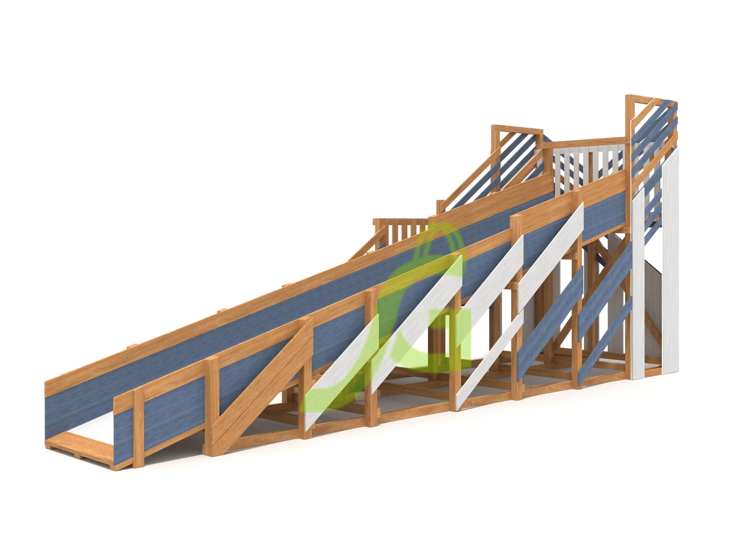 Преимущественный материал конструкции – дерево. Он характеризуется экологичностью, высокой прочностью. Известно, древесине свойственно рассыхаться и поддаваться гниению, но только не в нашем случае. Деревянные горки от компании IgraGrad заслуженно получили сертификат качества. Ведь материал полностью обработан нетоксичным средством на водной основе. Пропитка не пропускает влагу, не позволяет древесине рассыхаться, благодаря чему горка прослужит Вашим детям длительный срок. Кроме этого, катание с горки обладает огромной пользой:
