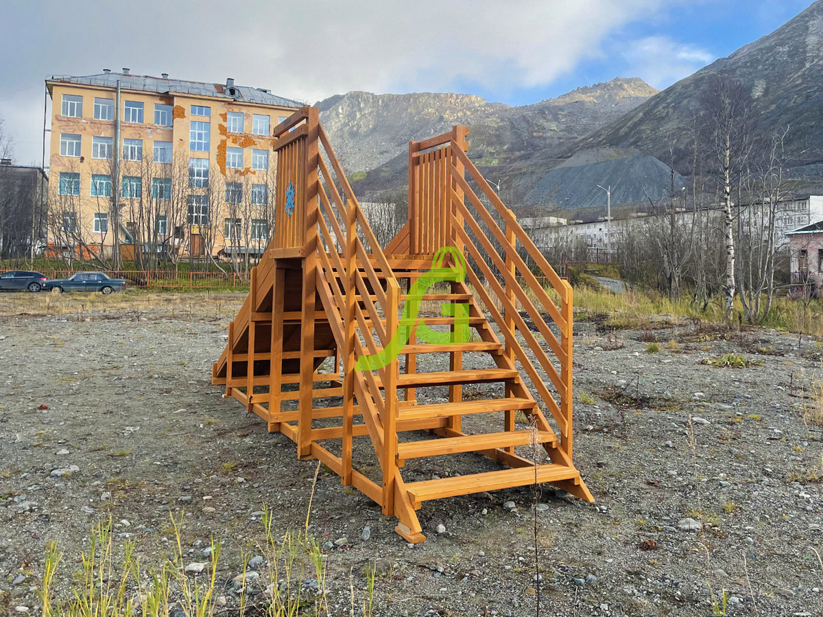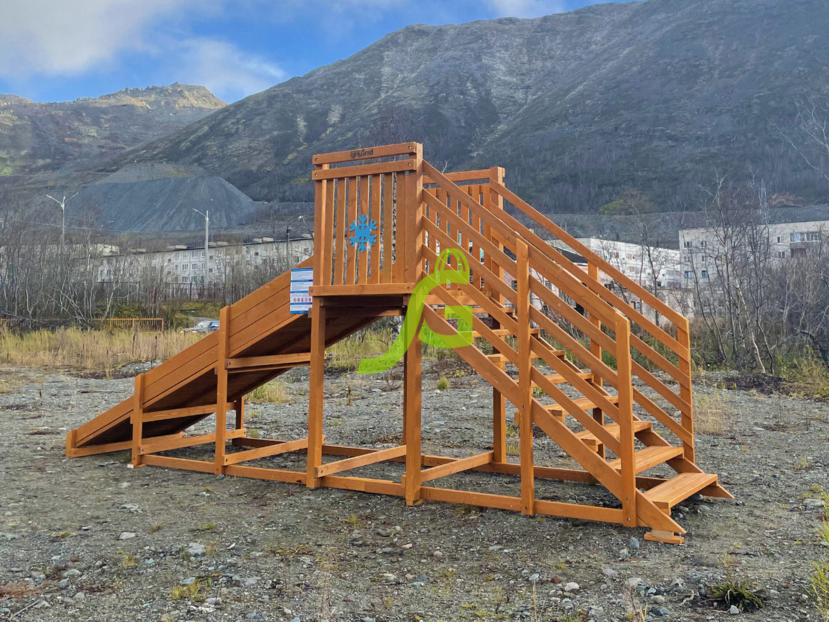 Даже ребята дошкольного возраста смогут самостоятельно взобраться наверх по ступенькам, держась за перила. Небольшая площадка в верхней части позволит детишкам удобно расположиться на ледянке или саночках.