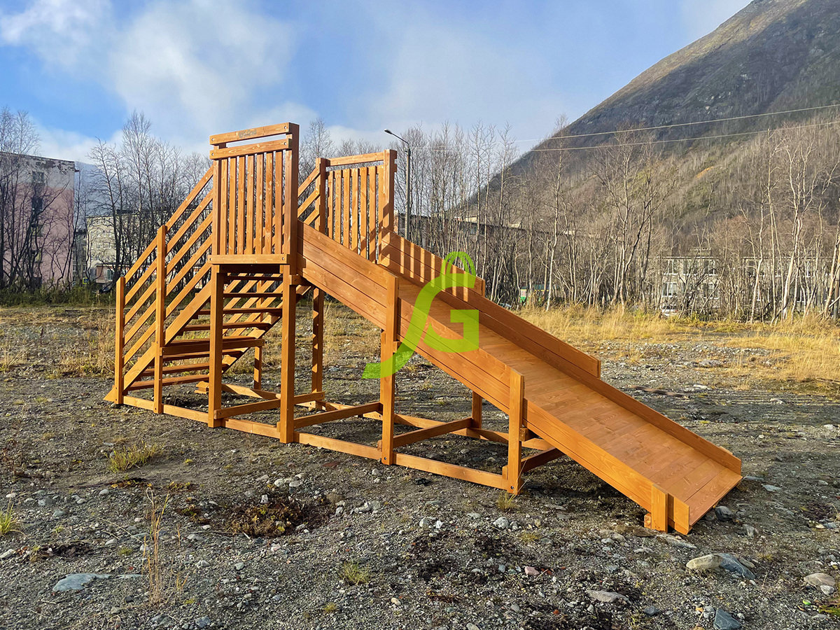 Современная детская заливная горка изготовлена из качественного дерева. Материал прошёл многоэтапную обработку, вручную отшлифован каждый элемент деревянной конструкции. Поэтому ребёнок не засадит под кожу занозу, да и одежда не будет цепляться за поверхность. Качественная сухая древесина выдерживает палящее солнце и суровые сибирские морозы.
